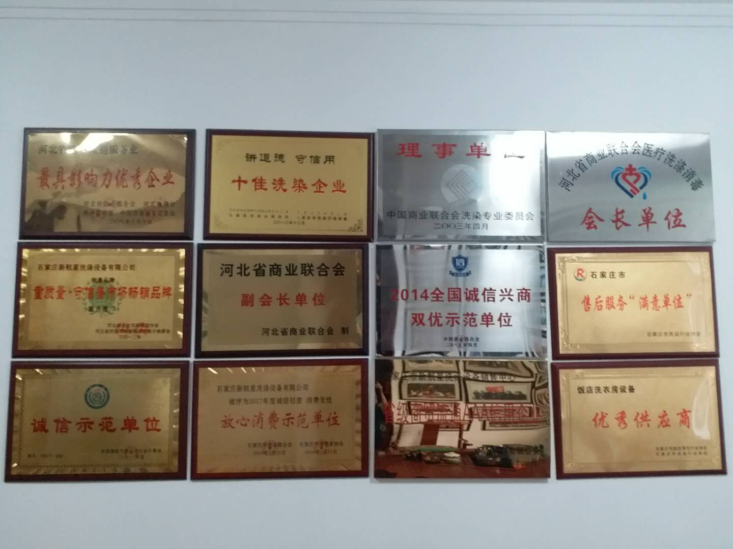“奧運獎牌”是證明了一個運動員的競技能力,“吉尼斯證書”證明了一個人在某一項事件中是人,而石家莊新航星洗滌設(shè)備公司的“榮譽墻”則證明了公司的實力。"誠信示范單位"證書和"放心消費示范單位"證書說明石家莊新航星是一家值得信任的公司,講信用守誠信;"售后服務(wù)滿意單位"證書肯定了石家莊新航星的售后服務(wù)質(zhì)量;"蕞具影響力企業(yè)"證書和"十佳洗染企業(yè)"證書體現(xiàn)了石家莊新航星作為洗染行業(yè)的一員,為行業(yè)所作出的貢獻。